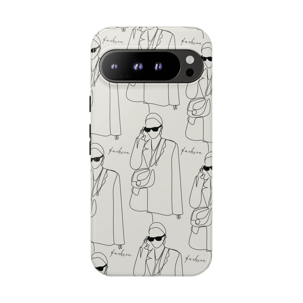 A sleek, protective phone case that pairs minimalist fashion illustration with robust everyday protection. The monochrome line-drawn motif of a chic, sunglasses-wearing figure repeats across a soft neutral background, giving the case a modern, editorial feel. Dual-layer construction (polycarbonate shell + TPU silicone liner) absorbs shocks and resists impacts, while the full-wrap print and UV-protected finish keep the artwork crisp outdoors. Slim profile, clear port openings, and wireless-charging compatibility make it effortless to use every day — whether you're running between meetings or stepping out for a gallery opening.