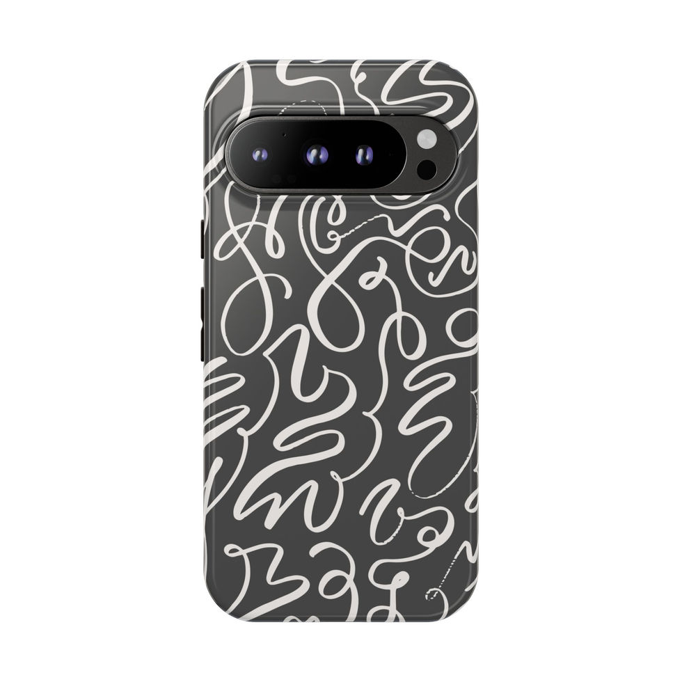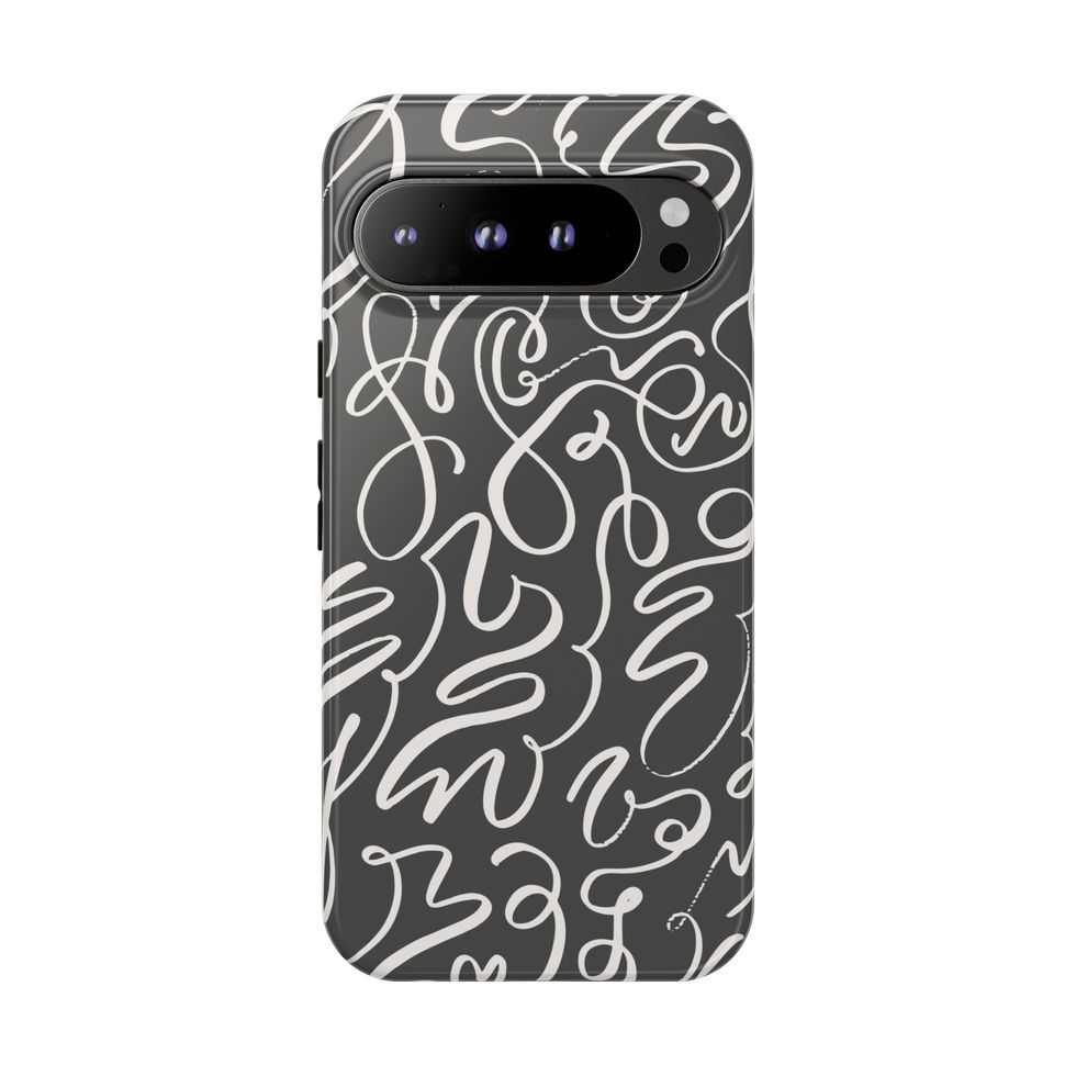 A protective phone case that blends urban edge with everyday practicality. The dark charcoal background and hand-drawn white scribble pattern create a lively, modern look that slips easily into city life. Dual-layer construction (polycarbonate shell + TPU silicone liner) cushions against drops while keeping ports accessible and wireless charging intact. The 3D wrap print wraps the entire exterior for seamless coverage, and UV-protection helps preserve contrast and color when you’re out and about. Minimal care keeps the finish looking fresh: avoid strong alcohols, heavy creams, and prolonged sun exposure.