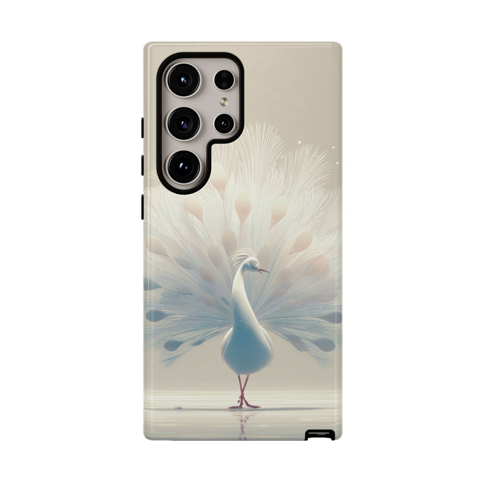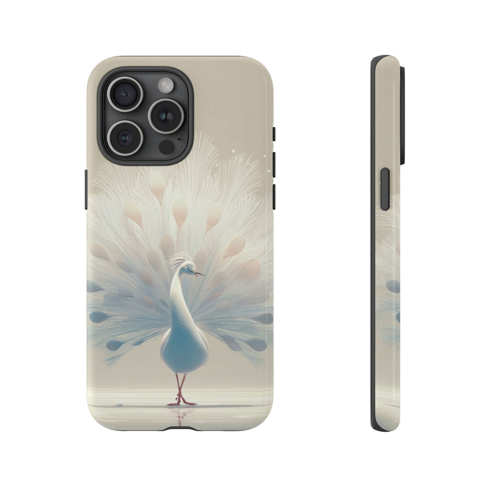 A slim, protective phone case that feels like a little piece of calm in your pocket. A soft, ethereal peacock spreads a feathered halo across the glossy/matte shell — muted creams and pale blues give the image a serene, artful look. The dual-layer design (hard polycarbonate shell + TPU silicone liner) keeps your device safe from drops and bumps while the clear port openings and wireless-charging compatibility let you use your phone without removing the case. Weather-resistant inks and UV protection keep the artwork gentle and luminous even with everyday wear. Lightweight and tactile, this case slips into a bag or hand with confidence and brings a quiet, graceful accent to your daily routine.